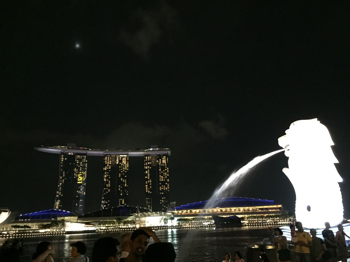 世界三大ガッカリに入るマーライオンだが、このツアーはシンガポール三大ガッカリといってよいだろう。サンズのショーは下から見るとレーザーで建物の屋根が少し光る程度で全くの肩すかし。ガーデンバイザベイのはサンズより多少はマシだが、日中の自然そのものの素晴らしさに比べるとやはり小賢しい。チリクラブは美味しかったが店は1時間で1回転させるつもりで料理が一度に運ばれ、もはやコースではなかった。