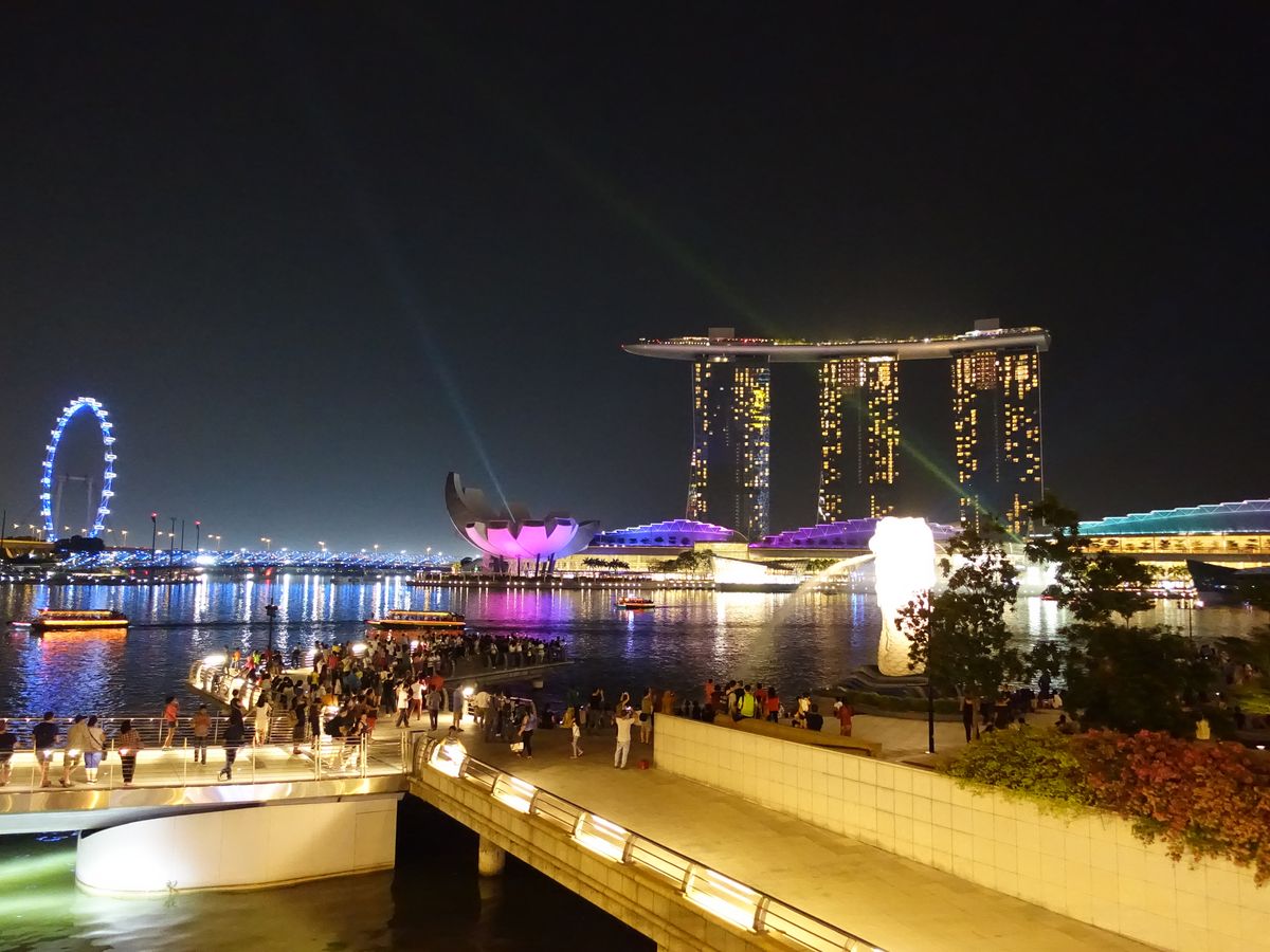 マーライオン公園とマリーナベイサンズの光のショーはゆっくり見れました。光のショーは想像よりは少し残念に思うかもしれません。マリーナベイサンズ側からのショーを見たほうが良いかも!?