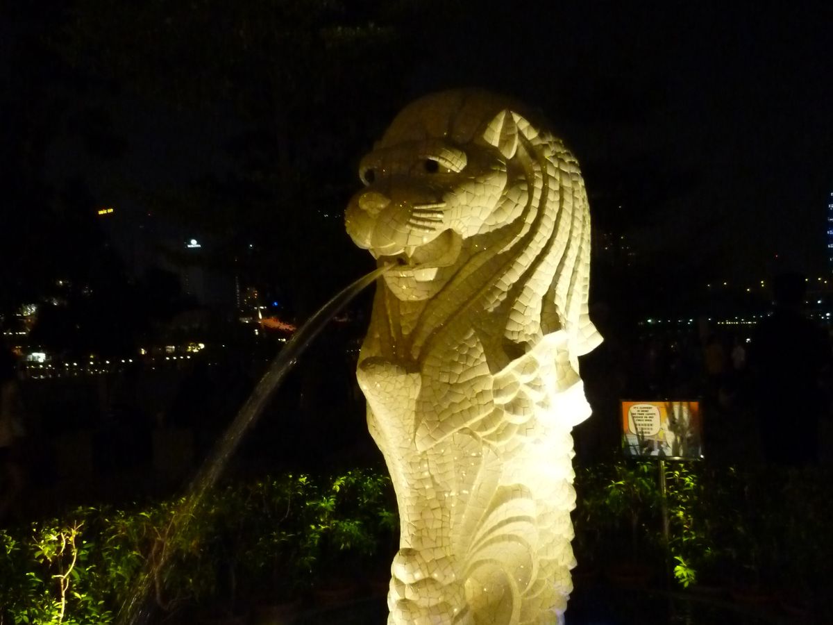 次は、マーライオンのそばでマリナベイサンズのライトショー鑑賞の予定ですが、容赦なく降り続くシャワーのような雨の中、そこらにいるいろんな人種の人々と同士のような気持ちで予定通りショーがありますように、と祈りつつ雨宿り。