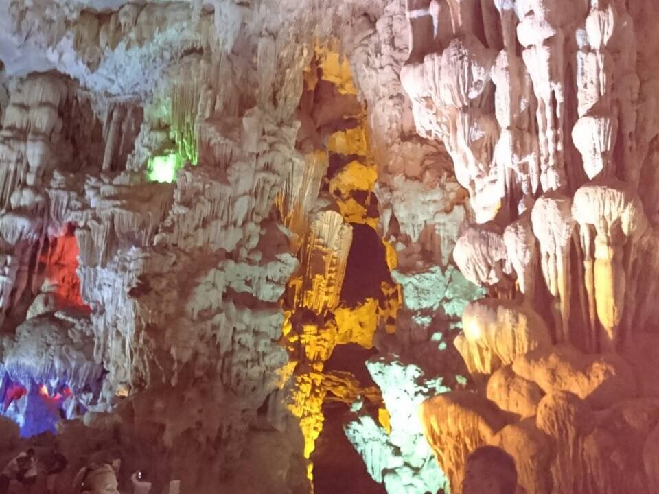 ハノイから車で4時間かけて行くかいがありました。私が参加させていただた船は貸切で、まったりと移動し、ライトアップした鍾乳洞へ。