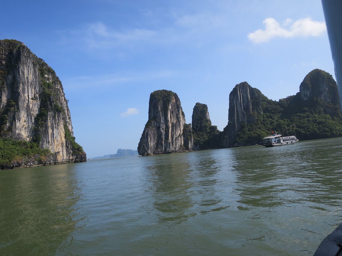 で、いざ行ってみると、全然問題なく、ハロンのちょっと美しい景色を満喫できました。道中は一部工事エリアがあり、未舗装路という事で、5分~10分の間に2,3回ガタンガタン言うレベル、日本でもこんなのはあるので、いちいち道が悪いと書かれるほどの状態ではありませんでした。また船はとてもゆっくり進み、且つ湾の波は全然ないので、まったく酔う事もありませんでした。天気予報は、見事外れてくれて晴天に!いや~行って良かった。