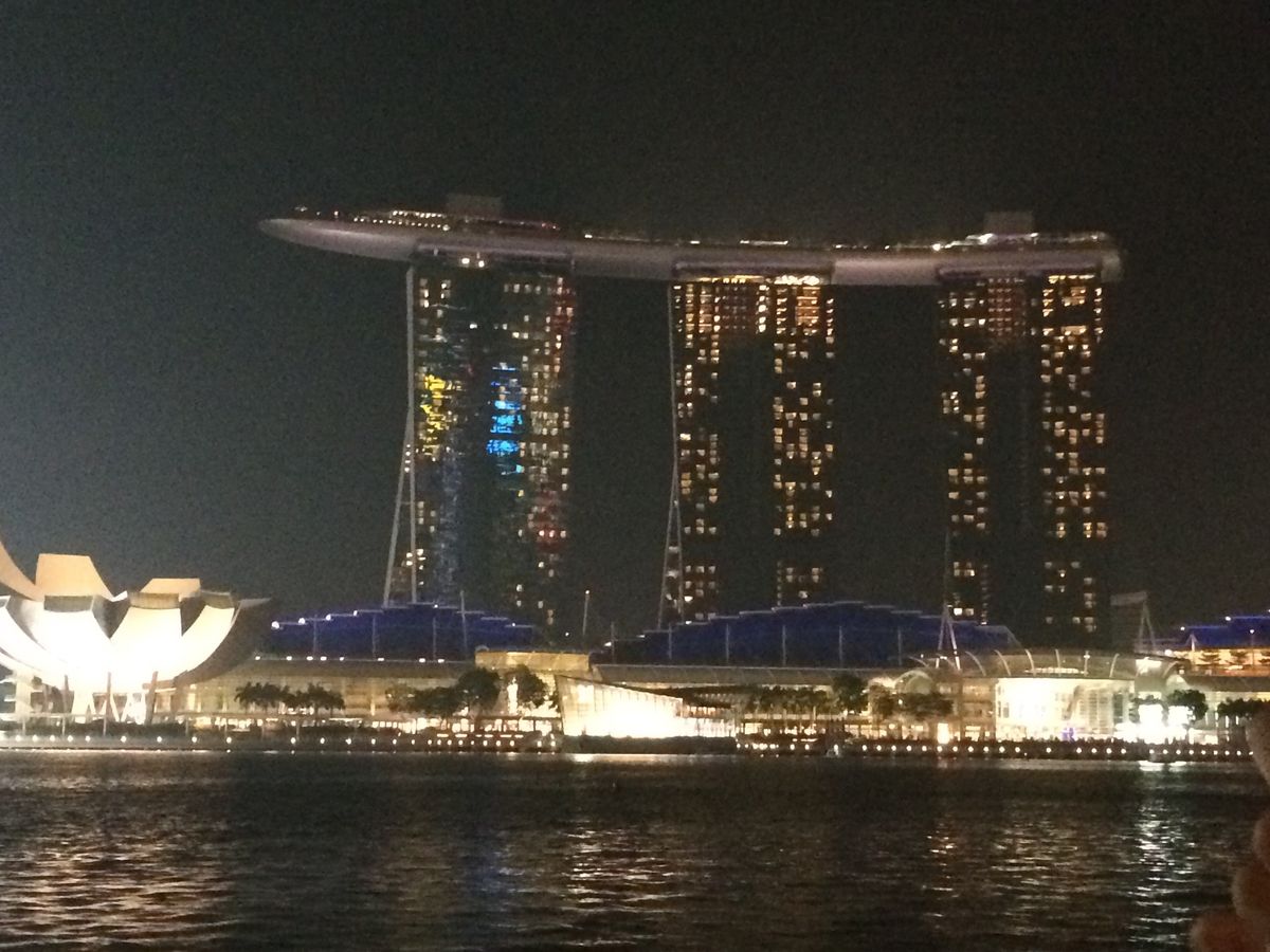 そこからリバークルーズに乗ってマーライオン公園へ。 地上から見る景色とはまた違う景色にただただ見とれるばかり。 夜のマーライオンも本当に幻想的で、よく言われるような「世界三大がっかり」なんてことは全くありません!