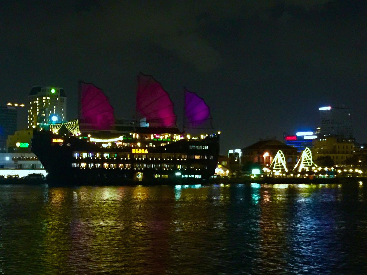 ライトアップの建物が少なく、夜景としては物足りなく感じますが、波静かでゆっくりできました。料理は美味しかったし、十分過ぎる量でした。飲み物代もホテルの半額ほどで良心的です。でも、デザートが一寸さみしかったな。ホテルから船着き場までのタクシー送迎でした夜でも安心して楽しめました。