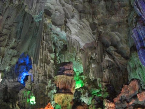 最後に寄港する鍾乳洞内部は、様々なカラーでライトアップされており、とても綺麗でした。一見の価値ありです。