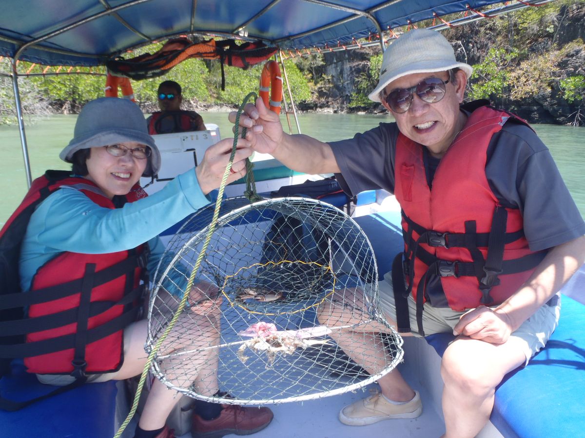我々だけの貸切ツアーでした。蝙蝠洞窟、釣りにカニのかご漁、マンタやワシの餌付と、