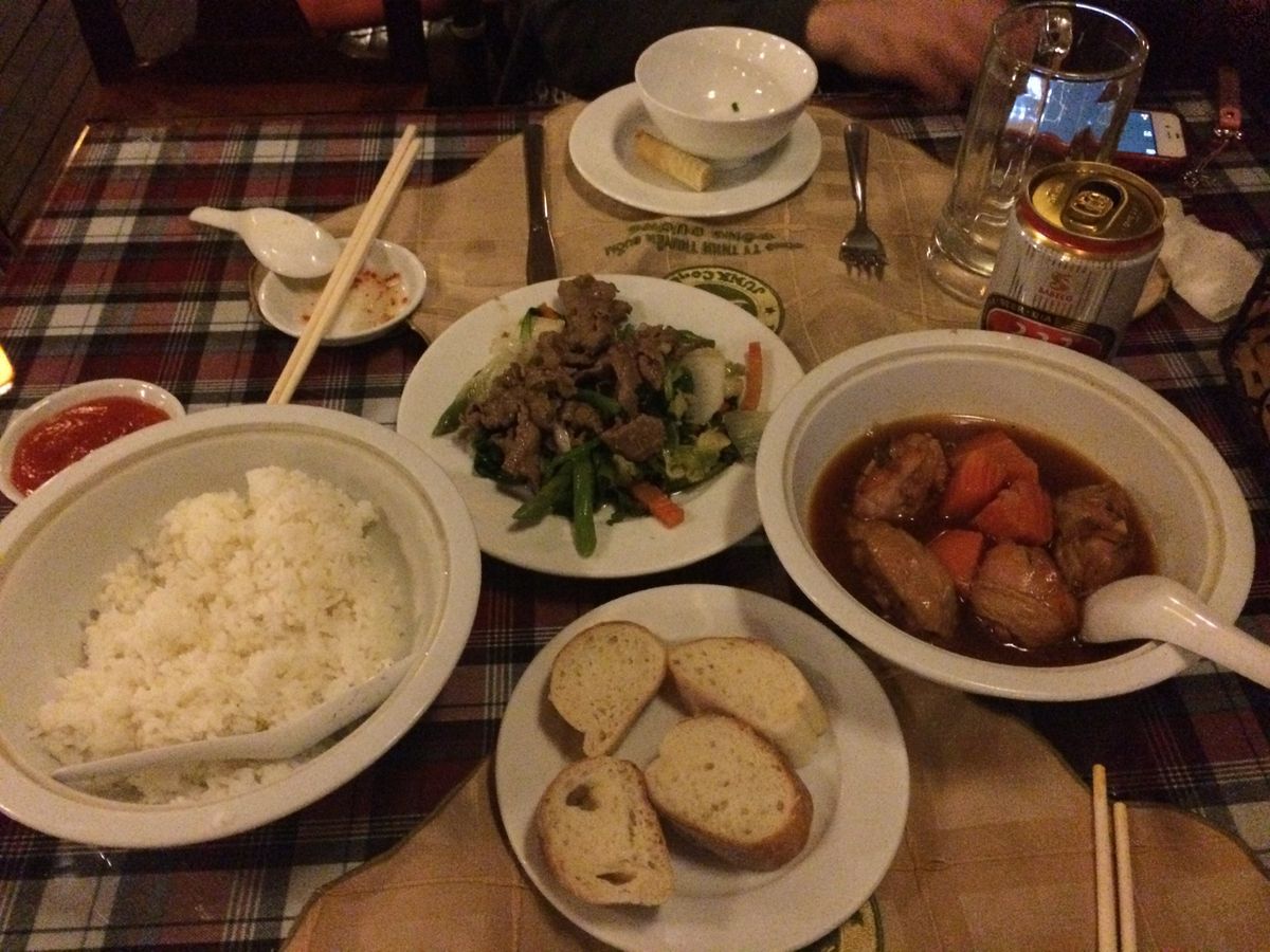 日本からのベトナム工場視察のお客様2名をお連れしての食事でした。