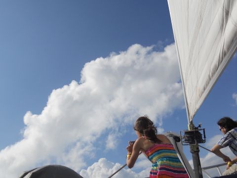 この度はバリハイクルーズ・アリストキャットクルーズへのご参加ありがとうございます。天候が悪い時の乗船で残念だったと思います。晴れていますと絶好のセーリングとなります。釣りについてですが、トローリングですので魚が釣れてから釣り上げてもらう方法となります。魚の釣れる割合はかなり稀ですが釣れると大魚です。是非再挑戦お願いいたします!