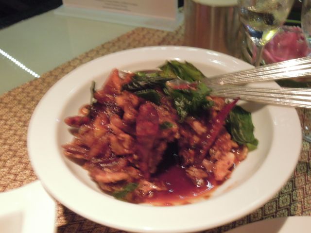 料理は5つ星ホテルのダイニングで出されるようなタイ料理のコース。味付けは西洋風にアレンジされているが、タイの香料が苦手の方にはちょっと向かないかも。