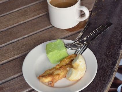 船の乗り場は、某テーマパークのジャングルクルーズそのまんまで、雰囲気は抜群です。載る前におやつがあり、ドーナツとバナナフリッターが美味しかったです。