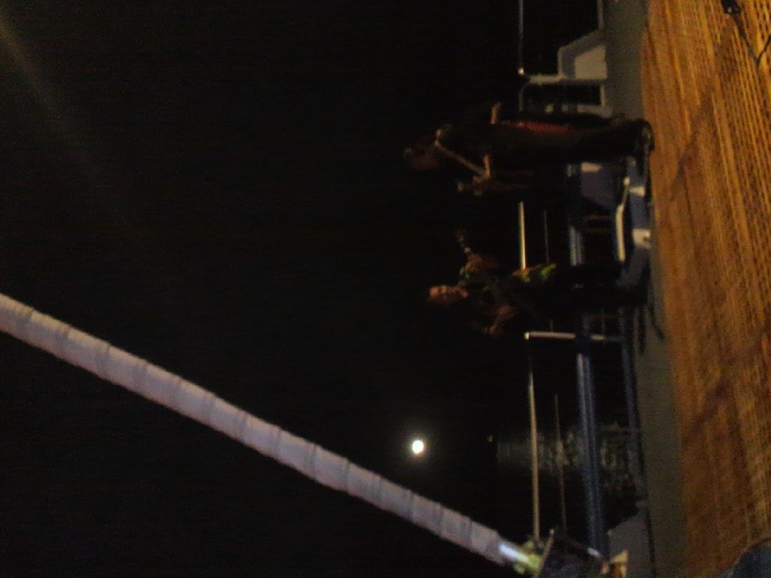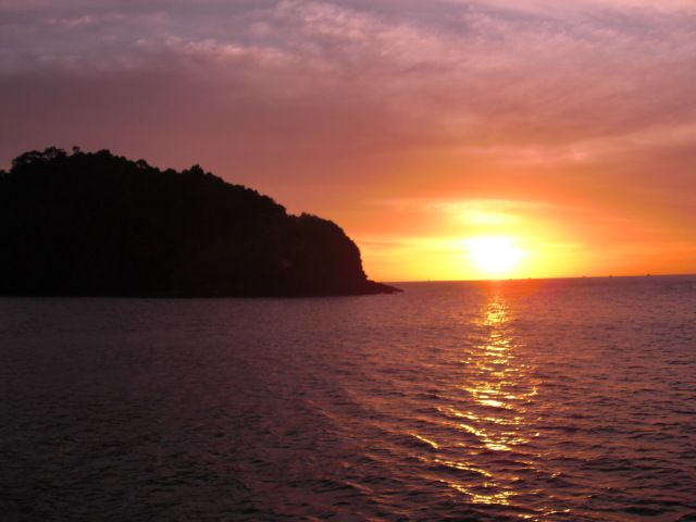 船は波が高く、ずいぶん揺れましたが、酔うことはなく、却って楽しいくらいでした。船からの夕陽や、夜景が綺麗でした。