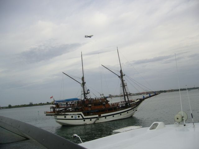 空港にほど近い海域で約2時間くらいのんびりとイルカをひたすら眺めました。イルカたちも次々と姿を現してくれて、ダイナミックなパフォーマンスはないけれども、自然の中で波と戯れるそのままの姿を満喫。空を見上げると飛行機というなんとも不思議な光景でした。