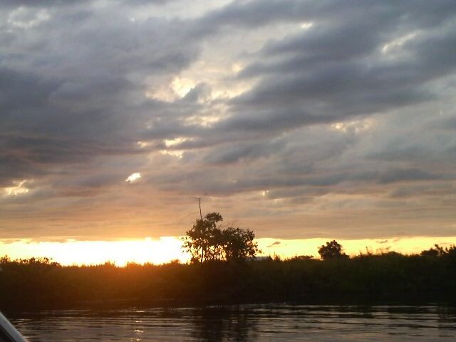 次にホタルを見るために一旦ボート小屋に戻ります。(日が落ちるのを待つため)その際にすごーーーくキレイな夕日が見れました。川に広がる夕日のオレンジ色が本当にキレイです。夕日については想定外だった分感動してしまいました。