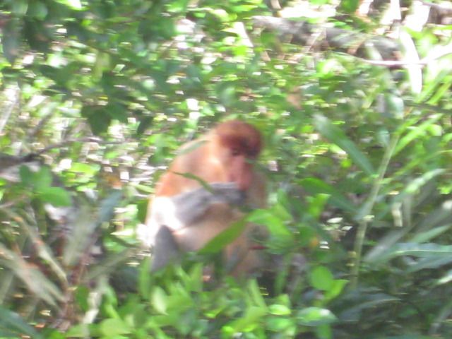 天狗ざるは本当に鼻が大きくて、明るい茶色の体が緑の木々の中に堂々とありました。ボスが群れを率いていたり、独身のオスばかりの群れがあったりと3種類の群れに遭遇できました。