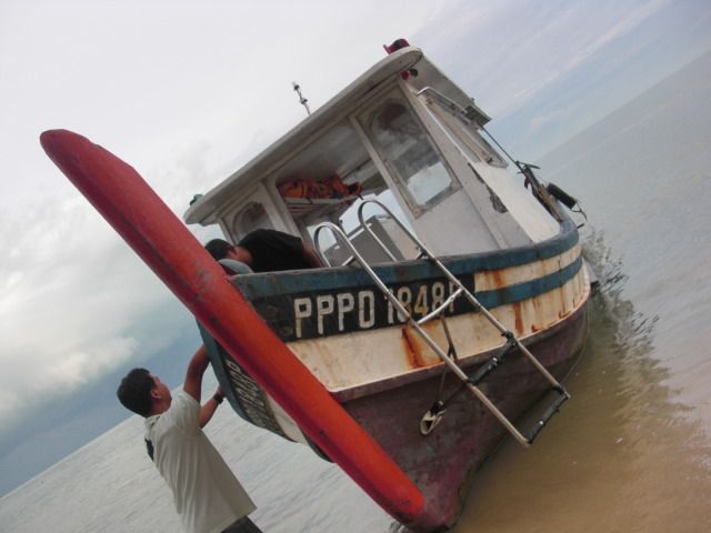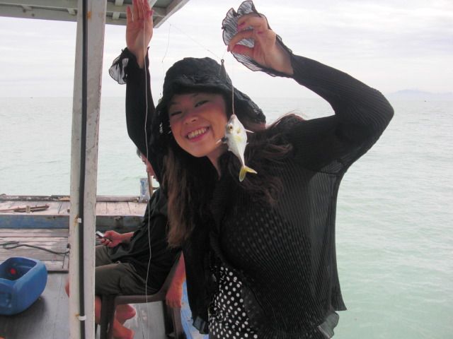 ホテルのロビーでピックアップ。バツーフェリンギから釣り船に乗船。ポイントはモンキービーチに近いマラッカ海峡。つり竿ではなく、おもりと針が2つ付いている釣り糸で釣ります。餌付けも釣った魚を外すのも、スタッフがやってくれます。