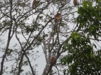 リバーサファリは2時間ぐらいでしたが、最初の1時間はぽろぽろとカニクイザルやテングザル、ベッカムヘアのサルが見られる程度でこんなもんかといった感じでしたが、徐々に涼しくなって後半1時間は3~6匹程度で群れをなしたテングザルなどが何度も見ることができました。ガイドさんいわく、猿も暑いのが嫌いだから朝と夕の涼しい時間によく木の上に登っているので見つけやすいとのこと。