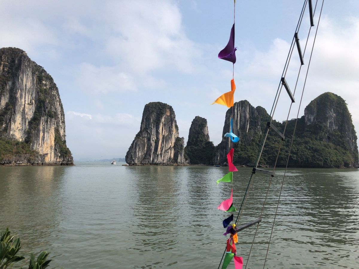 ガイドブックにはハロン湾は寒いと書いてあり、温かい格好で行きましたが、案外ハノイ と気温の差は無いように感じました。曇ってましたが、雨には降られずハロン湾の落ち着いた雰囲気を感じることができました! クルーズに乗る前の建物が思った以上に混雑していたので、バスから降りてはぐれてしまった参加者もいました。ガイドさんは旗を持ったり目立つ格好をした方がいいのではと思いました。クルーズのご飯はベトナム料理で結構美味しかったです。癖のあるものはあまりなく日本人も食べやすいものが多く出ている印象でした。バスの中でのガイドさんの話ではベトナムの文化のことなど色々話してくださり、移動時間は長かったですが、飽きずに乗っていられました。楽しい一日を過ごすことができました!