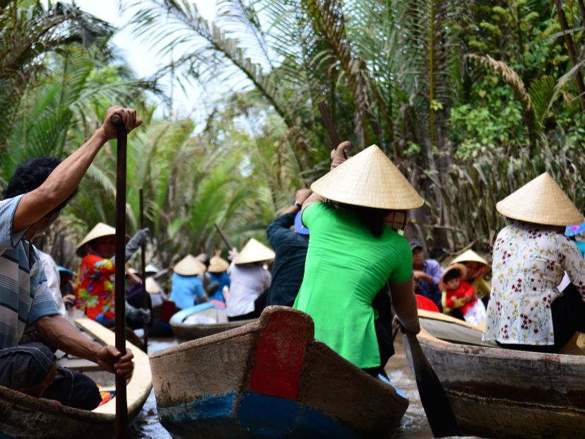 メコン川クルーズはクルーズのイメージとはかけ離れていますが、遊園地のアトラクションみたいで楽しいです。