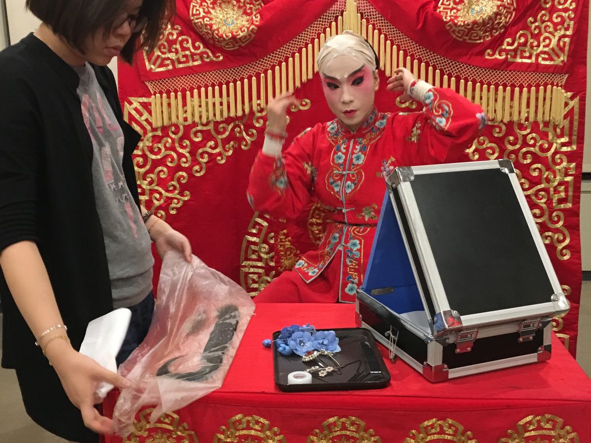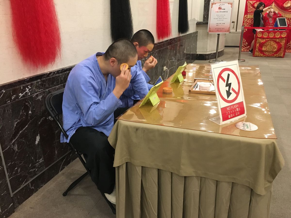 正直最初は夕飯シンイエで食べるし、近くだから行ってみようかな…との気持ちでもうしこみました。ところが待ち時間に小さい獅子舞で遊ばせてくれたり、衣装を着せてくれたり、化粧している姿を見せてくれたり…とってもファンサービス満点でした。