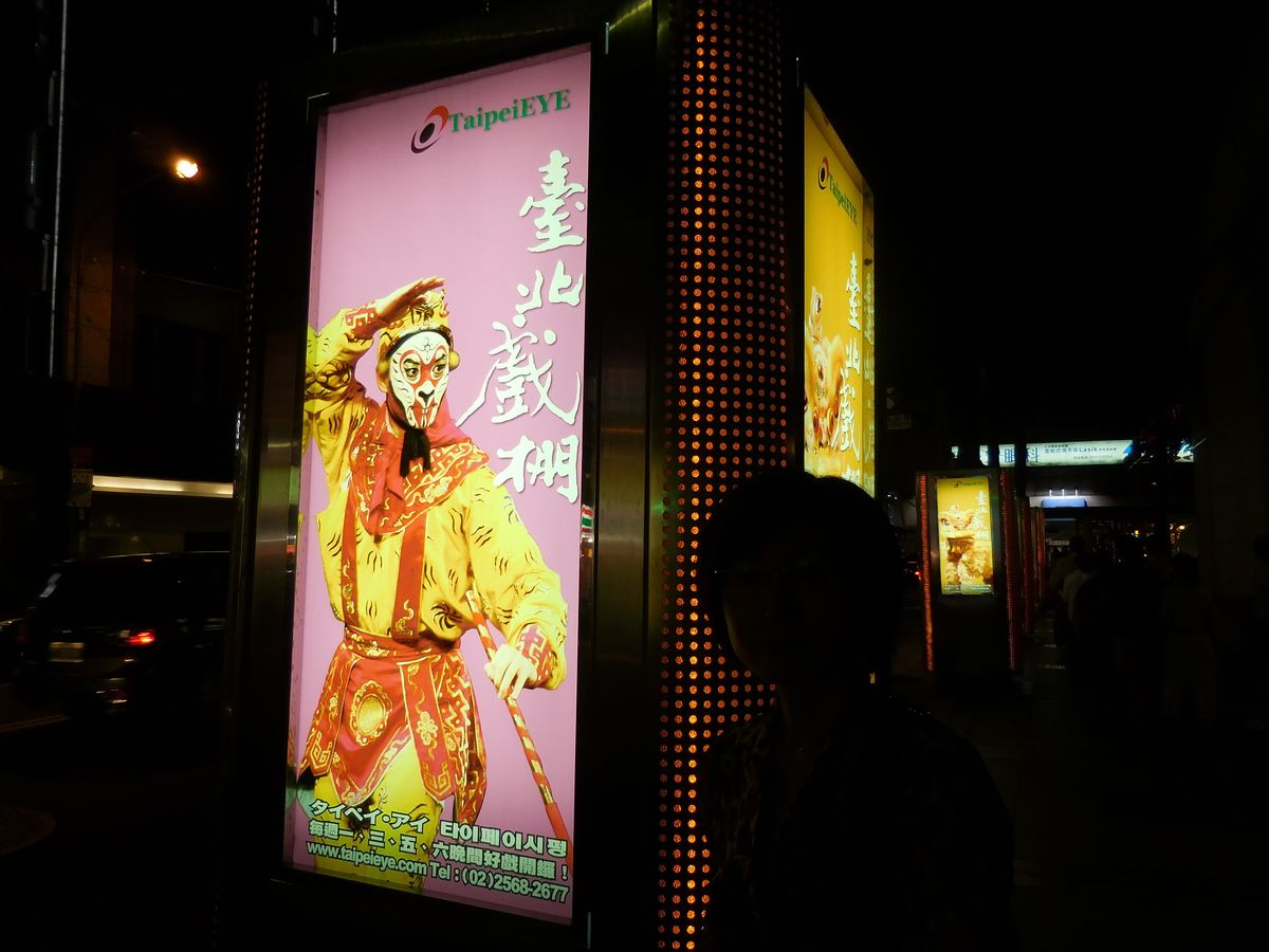 欣葉での食事(VELTRAで予約)の後、タイペイ・アイの観劇に行きました。徒歩でも行ける距離でしたが、夜なのと料金が安いのでタクシーを利用しました。開始前に京劇メイク鑑賞ができるとあったのですが、入場してから勝手がわからず見れなくて残念でした。でも、開始前までにはお客さんに記念のボールペンを配るなどのサービスもありました。京劇自体は、言葉は解りませんでしたが日本語の字幕もあり内容も分かりやすいものでした。コミカルな部分もあり立ち回りの激しさもあり楽しかったです。
