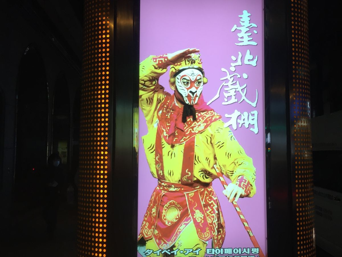 最初は「京劇は興味ない」と言っていた両親でしたがいざタイペイアイを訪れるとワクワクしながら開演を待っておりました。30分前に入りましたが待つ間も係の人がミニ獅子舞を触らせてくれたりして待たされてる感がありませんでした。エレベーターを上がると席は自由席なので、目の悪い母のために1番前を取りました。母も舞台が見えたみたいで喜んでいました。孫悟空の京劇は内容も分かりやすく字幕が日本語で出ますが全く見ずとも楽しめました。(あらかじめあらすじが書かれた紙を渡されます