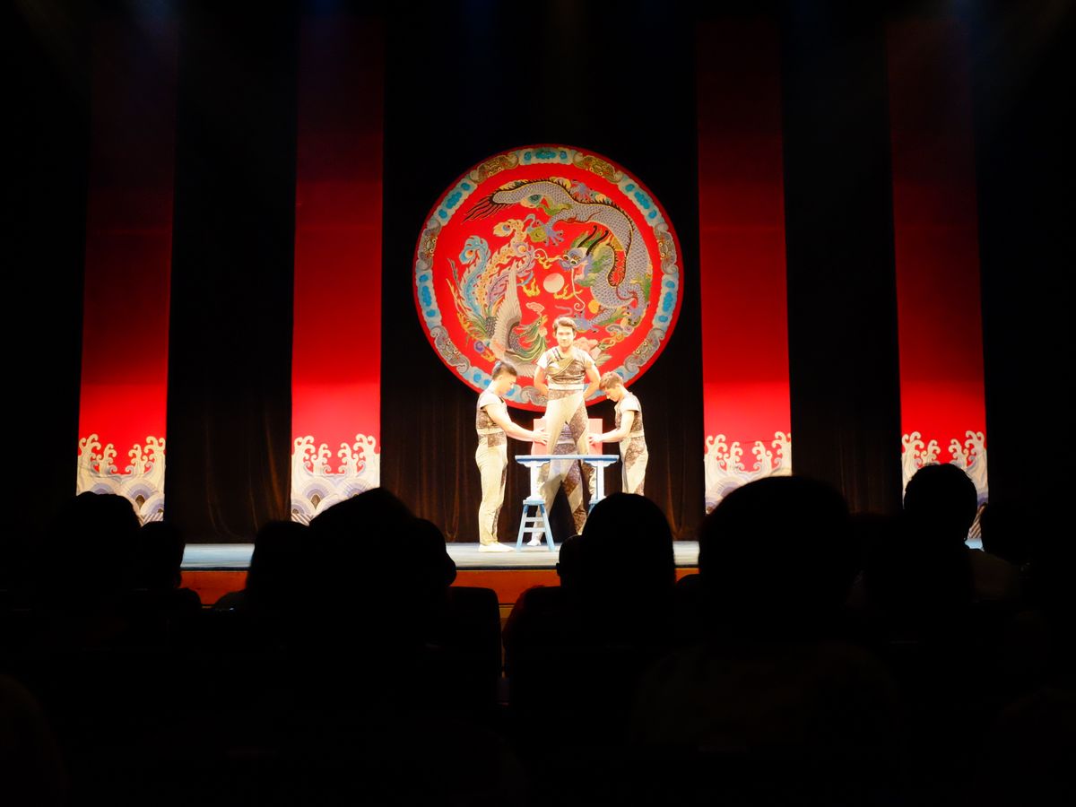 舞台は2部構成で、前半は迫力の体技、後半は物語です。向かって右側に日本語の対訳が出てくるので、日本人でも楽しめます。舞台と客席の距離が近くて、息遣いや表情がよくわかります。