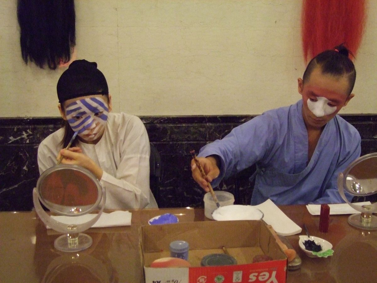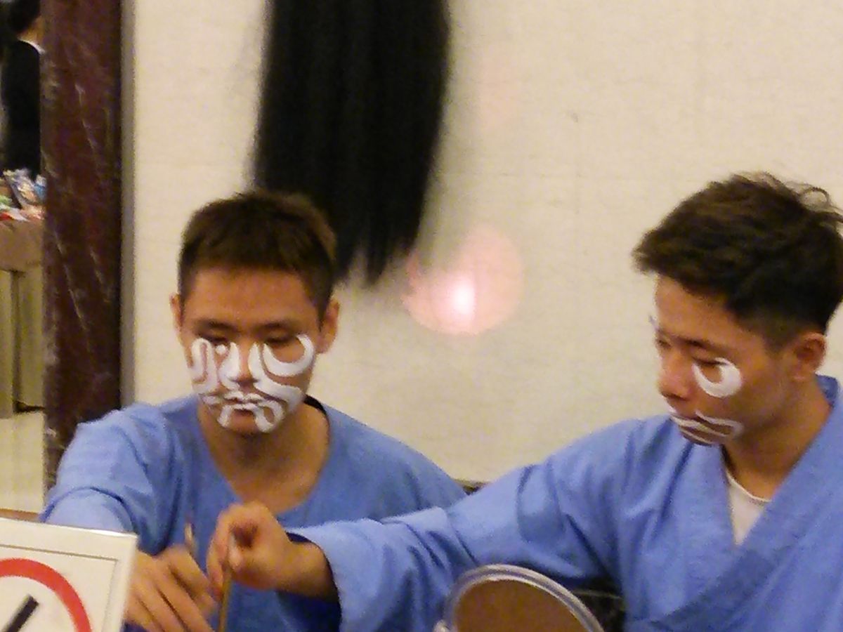 劇が始まるまでの間に、フロアでは台湾の伝統芸能である人形劇の人形を触らせてくれたり、楽器の演奏や、舞台化粧の様子を見せてくれたりと、待ち時間にも退屈することはありません。