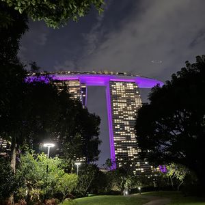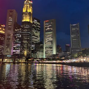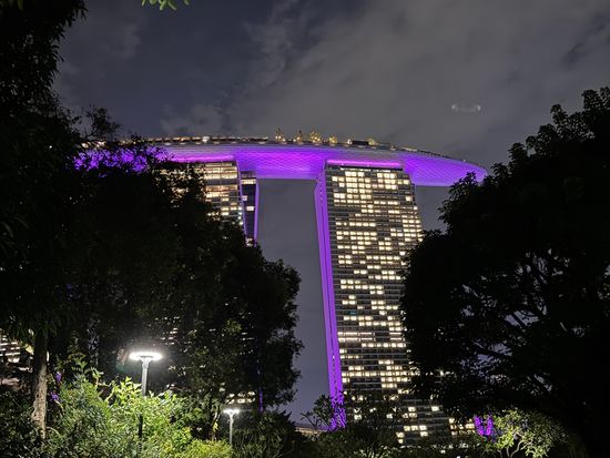 シンガポールも天候不順との事で、リバークルーズの直前まで雨が降っていましたが乗り場に行くまでに雨が上がり、船から見るマリーナ・ベイ・サンズやマーライオン、ボートキーやクラークキーなど川沿いの繁華街の明かりが、とてもきれいでした。マリーナ・ベイ・サンズのスペクトラもきれいでしたが、ガーデンズ・バイ・ザ・ベイのガーデン・ラプソディーは、光のイルミネーションと音楽が完璧に組み合わさっていて、とても感動的でした。ガーデンは夜は暗く個人ではなかなか行けないと思いますが、ガイドの方が案内してくれて、ここが一番いい場所とスーパーツリーの前に連れて行ってくれたのがよかったと思います。雨上がりで、座って見ましたが寝転んでみるのが最高だと思います。レジャーシートを持っていくのがよいと思います。