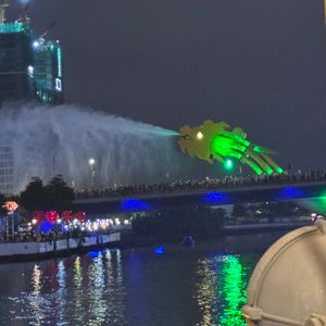 地上から見るドラゴンの火と水のショーとは、また違った趣があります。水上から美味しいベトナム料理を食べながら、ドラゴンのショーを見ると、さらなる迫力を感じました。遊覧中、両サイドのネオンをみていると、急成長しているベトナムの力強さを感じました。また、専属のガイドさんがホテルまで送迎もしてくれるので、初心者の方にもおすすめです。今回のガイドのトックさんは、素晴らしいサービスで、写真を気兼ねなく撮ってくれたり、ベトナムについて、いろいろな豆知識を教えてくださいました。素敵な時間を過ごすことができました。感謝しております。
