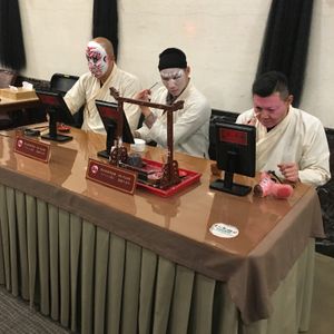 開園一時間まえから、切り紙や版画、手や顔に京劇ペイントのサービスやヒーローとの記念写真など休み時間も、伝統芸能の披露など休む暇ないサービスがありました。ただ、土曜日の京劇にアクロバットは平日より短いようで、京劇だけを楽しみたい方は平日のほうがいいかもしれません。