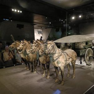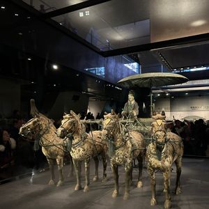 秦の始皇帝陵では銅馬車を360℃からしっかり見ることができ、この他の副葬品もしっかり見学できました。敷地が広くカート車移動のため、昼食や夕方のフライトを考えて短縮ルートで案内してもらいました。何度かカート移動があるのですが、ここでも李さんがすり抜けていくので時間短縮できました。