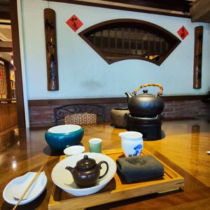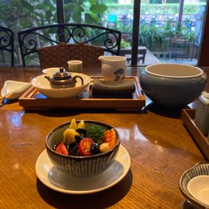 茶葉の匂いを嗅いでから試飲をすると、匂いの変化や味の変化がわかり、説明を聞くことでお茶屋さんで試飲するより烏龍茶について知ることができました。お茶の入れ方も一人に一セットの茶器が用意されているので、好みのお茶を入れることができました。お食事は精進料理のようでしたが、ボリュームがあってお腹いっぱいになりました。販売されているお茶は高かったので購入しませんでしたが、無理に買わせる感じはなかったです。茶器も欲しくなってしまいましたが、高かったので諦めました。茶器は今後値上がりするとは言われました。