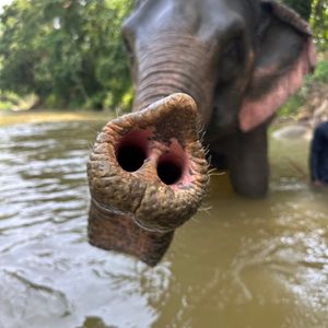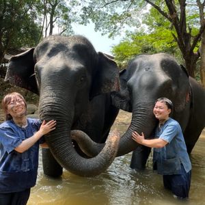 数多くあるエレファントキャンプの中、唯一?象の首に直接乗れる体験ができるツアー。値段が相場より5倍-10倍?くらい高い分があって、二人に対して四人が対応してくれた。写真やビデオもたくさん撮ってくれて無料で送ってくれた(ほかは有料が多い)。ガイドのゴーさんはとても親切でした!片言の日本だが、ところどころにネタをもってて面白い!最高!!