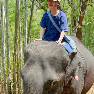 ずっと小さい頃から象に乗るのが夢でした!