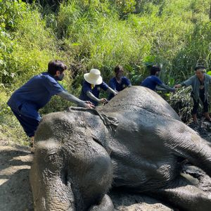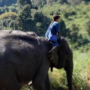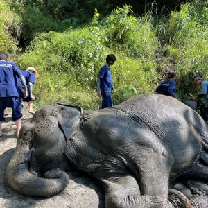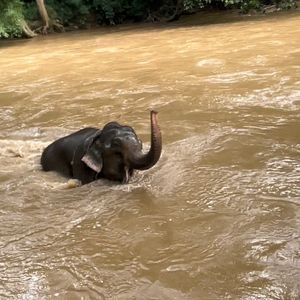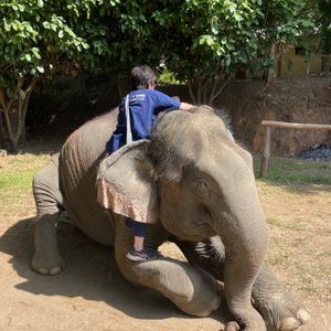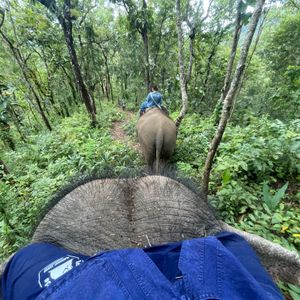 バンコクで鞍付きの象には乗ったことがあったのですが、このツアーは、象さんに直に乗れるということで、是非体験したいと申し込みました。チェンマイに来ないと体験できないし、一生に一度かも、と思っていたけど、もうすでにまた行きたいな、と思ってしまうほど、特別な経験でした。私達が行った日には、若い日本人の象つかいさんもいて、自分のぞうに乗って、一緒について来てくれました。もちろん、日本語ガイドさんと、写真を撮るためにスタッフの方もいて、いろいろなお話を聞きながら、写真もたくさん撮って頂き、あっという間の1日でした。念のためにスマホは防水ケースに入れて持って行きましたが、無くても大丈夫でした。水遊びの時は、岩場に荷物を置くし、写真は撮ってくれるし。大満足です。とてもお勧めのツアーです。
