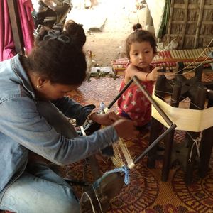 村の女子学生手作りの昼食をいただいた後は、織機の音と染色の独特の香りの中、ガイドさんとドライバーさんがセットしてくださったハンモックでお昼寝。足元では犬もごろんと、とてもゆったりとした時間を過ごせました。