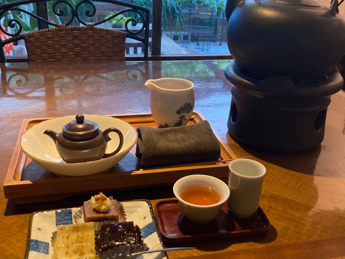 オプションのランチは見た目よりもボリュームがあり味も美味しかった。食後のデザートと一緒に自分で功夫茶を入れる復習もできて良かった。