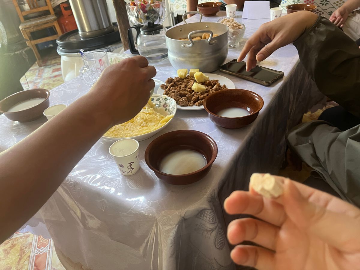家畜のミルクを使った伝統的な乳製品(チーズ、馬乳酒、バターなど)を試食しました。最初は乳製品だからという理由で心配はありましたが、そんなのは忘れるくらいどれも絶品で、何度もどれもおかわりしちゃうほどでした。
