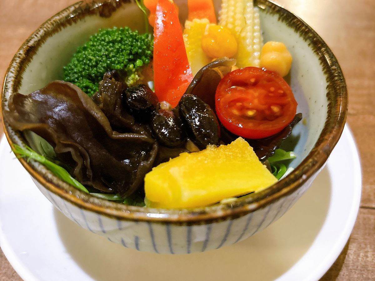 5種類の台湾烏龍茶を試飲しました。一緒に受講した娘は、情報量が多すぎてついていけない、と言っていましたが、それでも味や茶の特徴、産地について知ることができました。私は中国茶を少し習ったことがあったので、中国茶との違いも分かり、とても楽しかったです。台湾茶藝を知ることで、その後入った茶館でも飲みたい茶葉を選んだり価値を知って味わうことができました。昼食付きを申し込みました。素食という日本で言う精進料理でした。とても優しい味で、地元の人が次々と訪れていました。