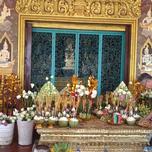 その後のお参りは、ちょうど仏教の日だったためか多くの人が寺院に訪れていて賑わっていました。ガイドさんからお祈りの仕方を教わり、地元の人に囲まれながら線香とお花を供えました。もし個人で訪れていたとしても遠くから様子を眺めて写真を撮るに過ぎなかったと思うので、貴重な体験ができ良かったです。