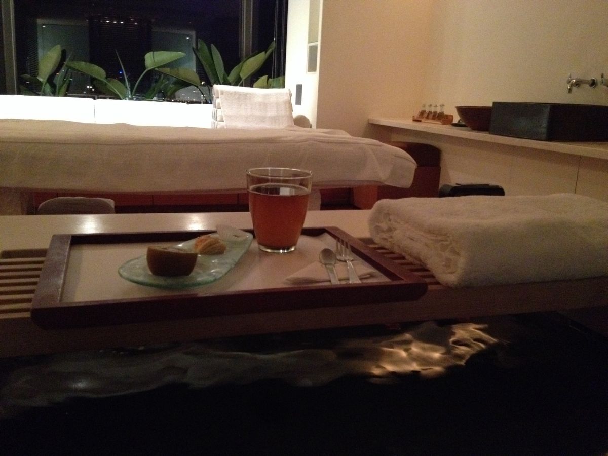 エステあとに、フラワーバスにはいりながらいただいたデザートが最高!
