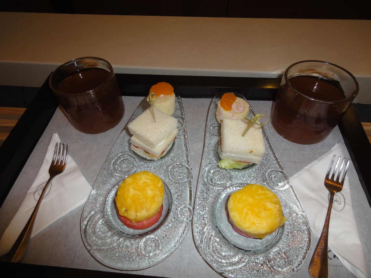 途中でお菓子とお茶がでました。