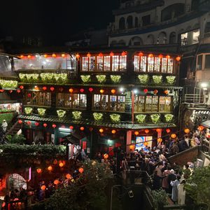 また、そのスポットの先にある『海悦楼茶坊』では断られそうなところを交渉してくださって見晴らしの良いテラス席を確保していただいて、こちらのお店のテラス席や入口前のスペースでは、人混みに邪魔されることなく九份の街並みを楽しむことができました。