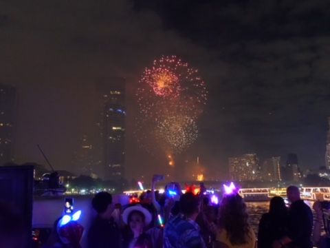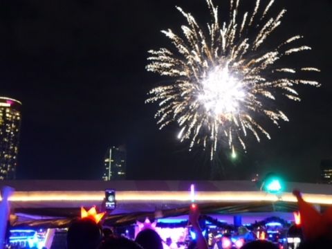 食事も様々な料理があり、量もたっぷりありますので、食事をとりながら夜景を楽しめます。クライマックスのカウントダウン花火は、DJの掛け声とダンスで相当盛り上がります!