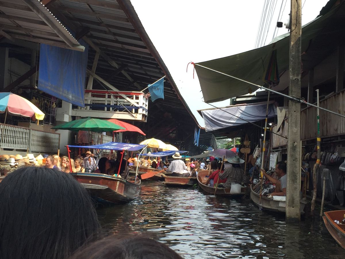 水上マーケットで手漕ぎボートに乗り換え、いざ、買い物&探検開始!手漕ぎボートが密集する水路を縫うようにそれぞれのお店を移動していく様子は圧巻、貴重な経験が出来ました。