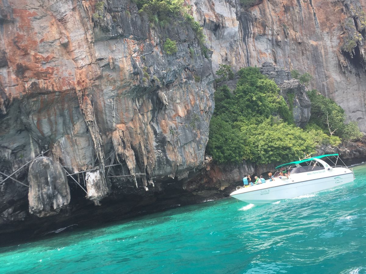 プーケットはずっと雨が降ってたのですが、ピピ島とバンブー島は、とってもお天気が良くて、素敵な体験ができました!スピードボードに40分ほど乗っていないと行けないので、酔いやすい方は結構大変だと思います。。。スタッフの方が優しくて、写真もたくさん撮ってくださり、いい思い出になりました!