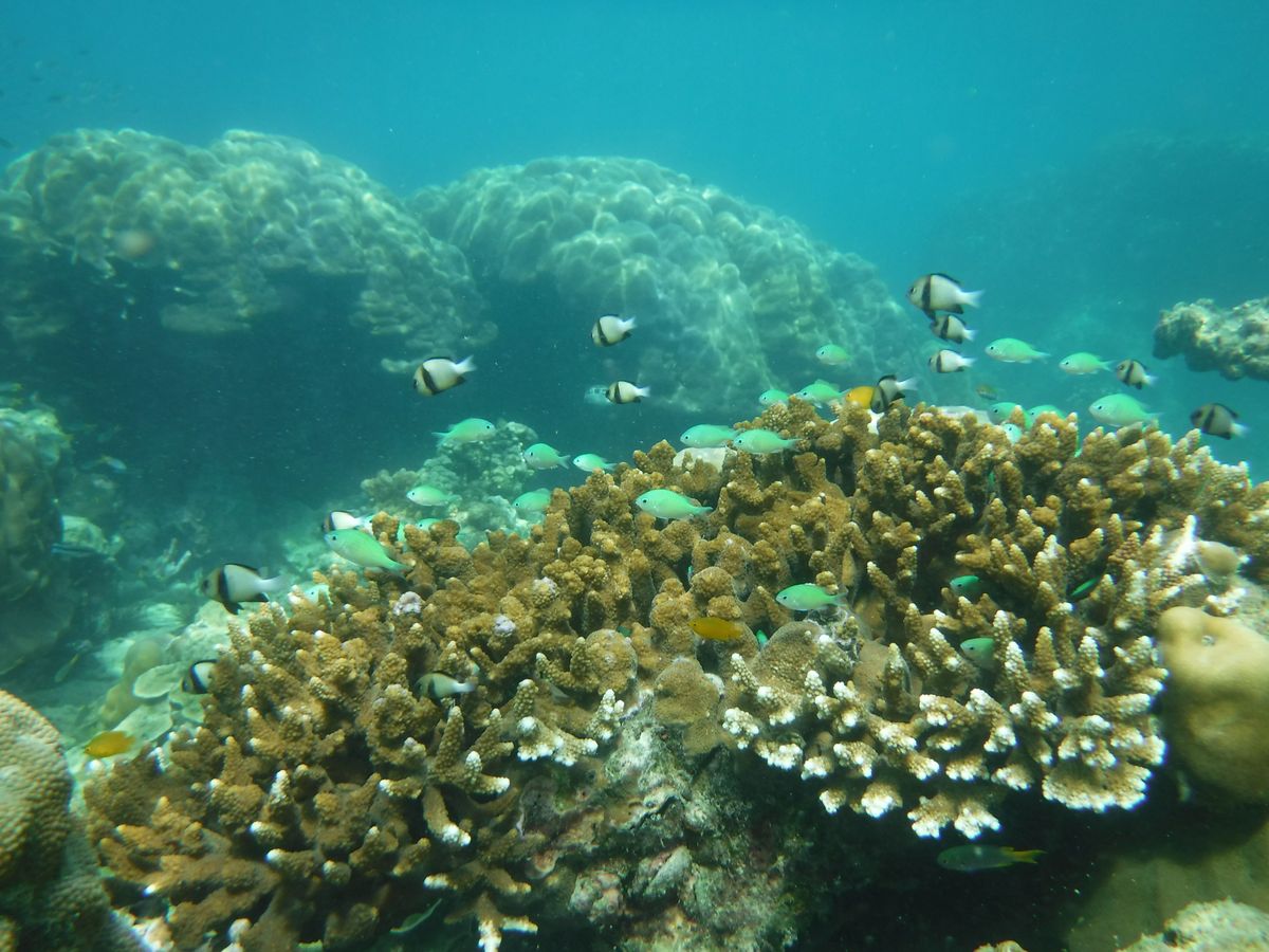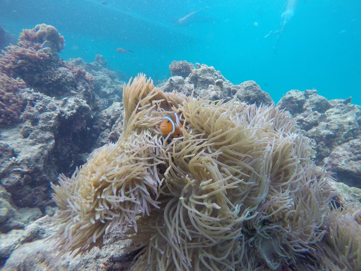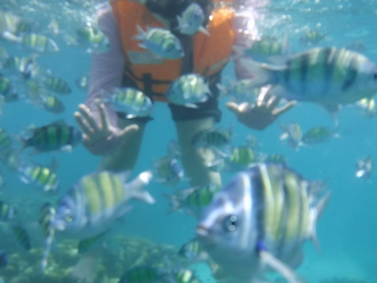 シュノーケリングのゴーグルはタダで貸してくれるので、浜からすぐにリーフ地帯があるのでひたすら泳いでいました(^ν^)