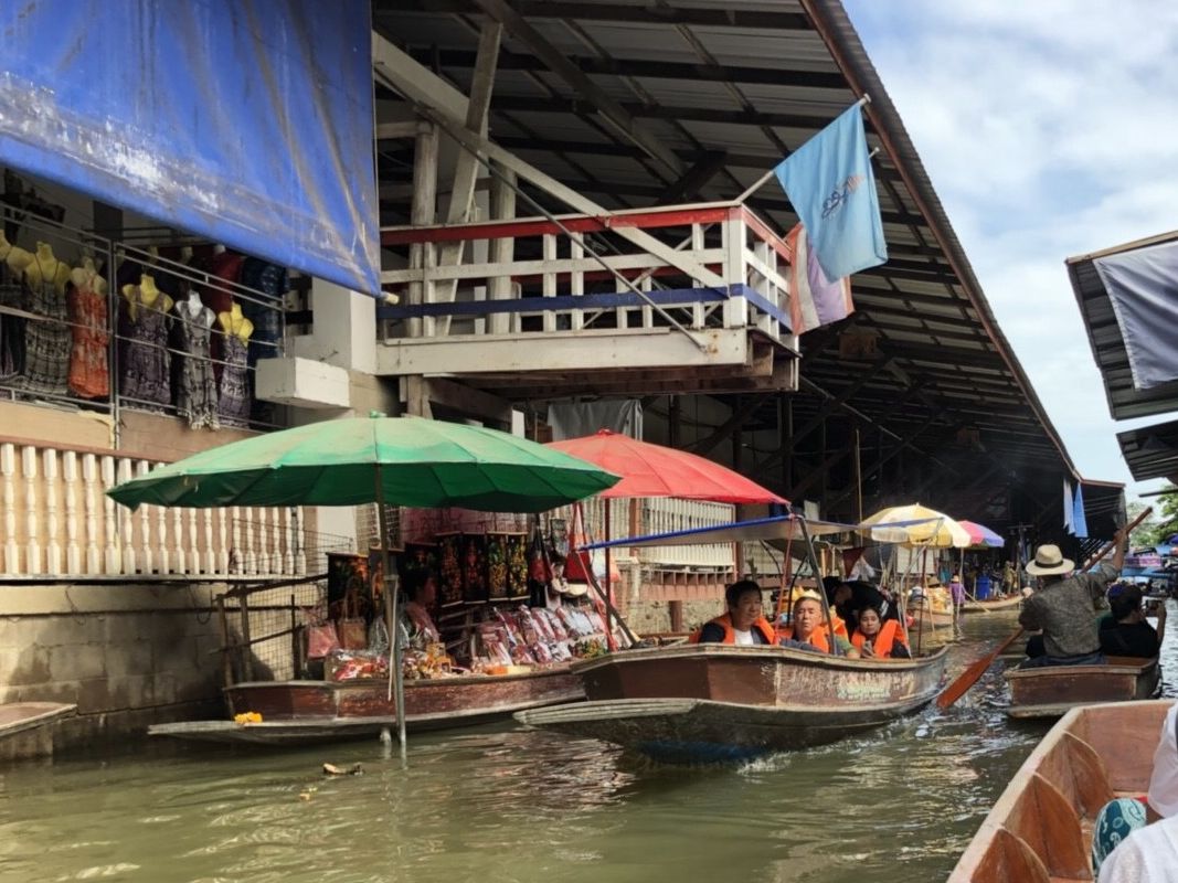 初めてのバンコク旅、行きたいところをリストアップし、水上マーケットとメークロン市場だけは絶対に行きたく、かつメークロン市場行きの列車に乗れるツアー、そしてホテルの朝食がついておりましたので、食べる為に、朝の出発が遅いこのツアー見つけ、申し込みました。