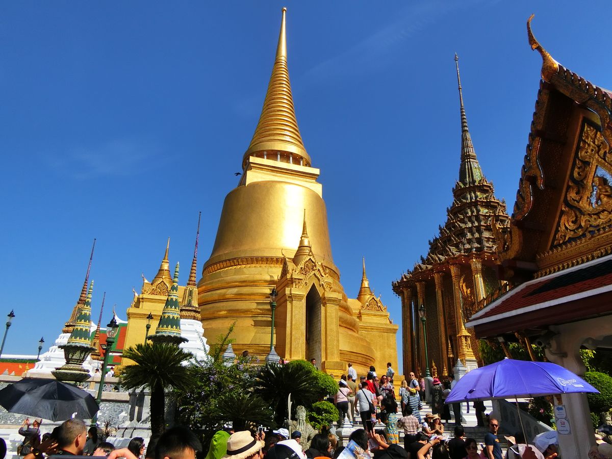 週末だからなのか、亡き国王のため美しく改修した王宮に、国王の参拝に訪れるタイの方々が多いのか…