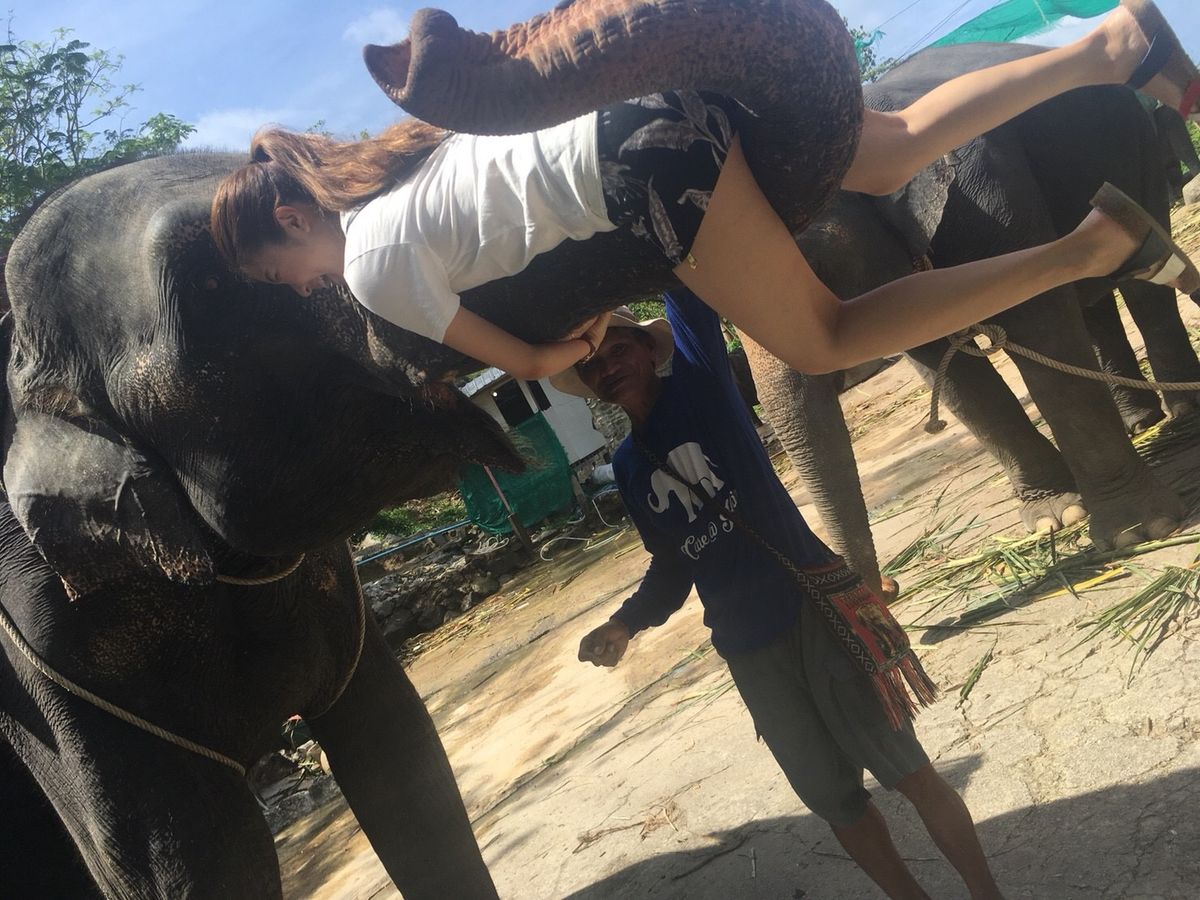 象乗りが終わり、写真の現像待ちをしてるときに、他の象使いさんに話しかけられて、100バーツで象の鼻で持ち上げられたり出来ると聞き、もちろんやりました!凄くテンションがあがり楽しかったです!