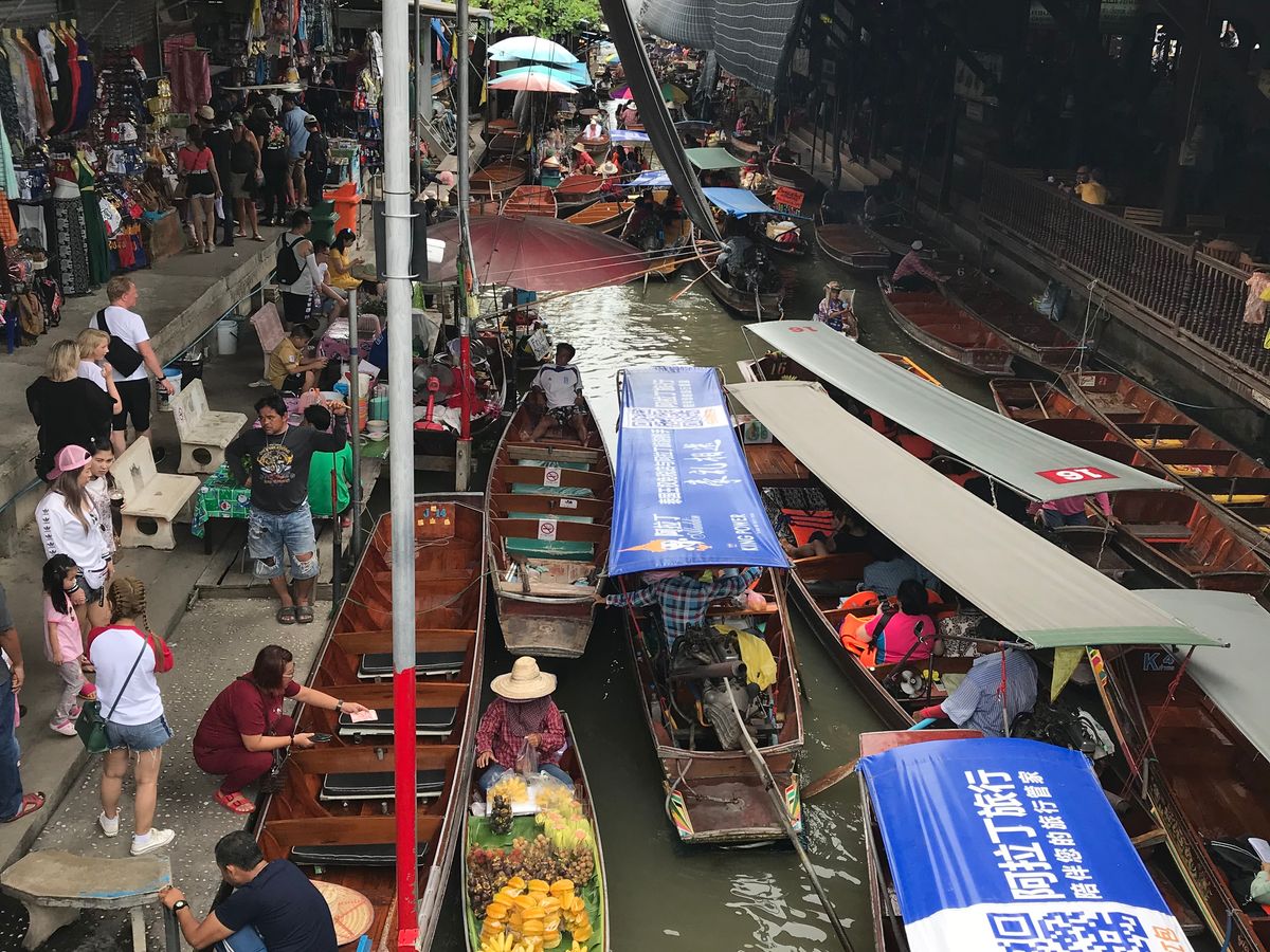 水上マーケットはすごい混雑でした。日曜日に行ったので、観光地はしかたないですね。ボート多すぎてなかなか前に進めない状態だったので、暑さ対策は必要です。メークロン路線市場は実際に電車に乗るので、市場を畳む様子はあまり見れないのですが電車の下から見てる人がすれすれのところを通る臨場感は味わえました。ガイドさんがよく見える電車端に案内してくれました。こちらもすごい人混みでした。一日に遠い距離を回るので自分たちで行くには大変なコースだったのでツアーを申し込んで良かったです!とても良い思い出になりました。楽しかったです‼︎